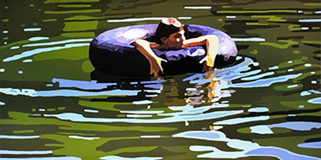 During the 50 years I lived in Washington Grove, MD, I spent many wonderful hours enjoying the cool waters of Maple Lake. After a long day in the studio, I would grab my inner tube and head to the lake for an hour floating in the shade of the trees. There wasn't a better way of beating the hot sunmmer heat. The original painting is available as a limited edition print. Image size is 11" X 6" and c