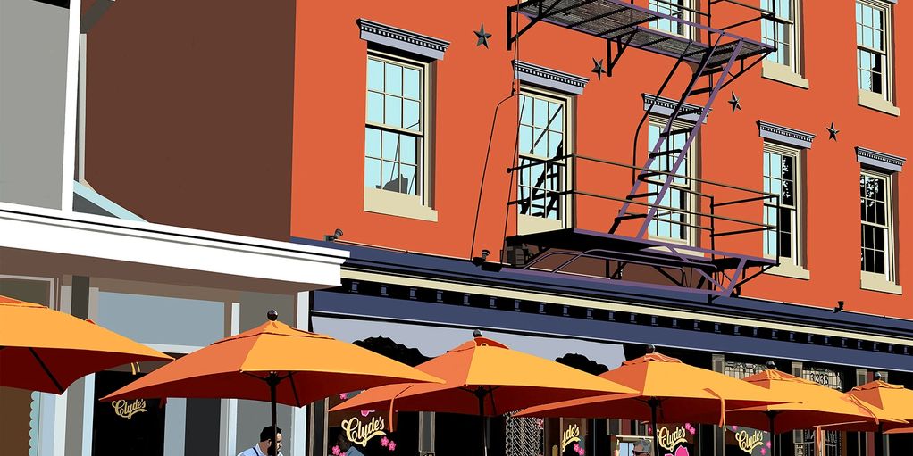 An early summer evening found me strolling along M. Street in Georgetown and wishing I was one of the lucky diners enjoying dinner at Clyde's. This beautiful giclee reproduction is available in strictly limited edition in three different sizes, each with a acid-free museum mat, ready for your frame. Click on the image for more information.